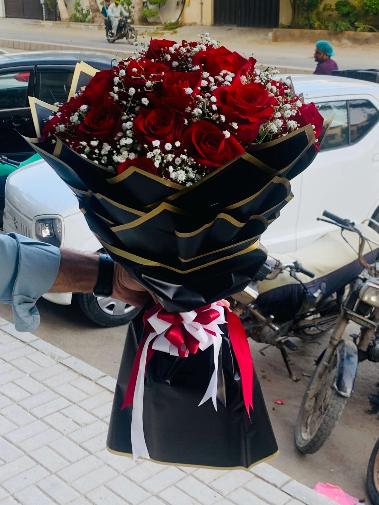 bouquet imported roses 22 babies braid 2