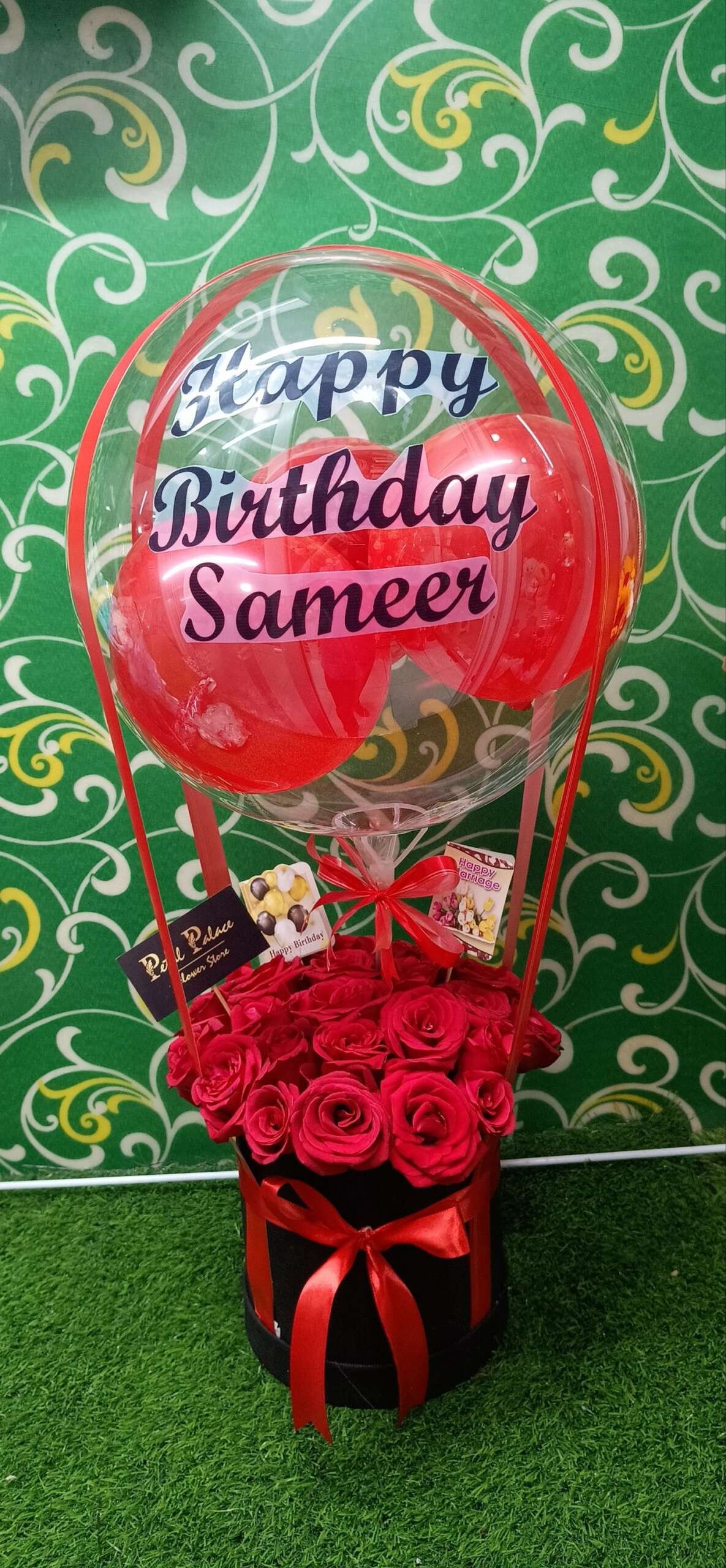 books arrangement with balloon 24 rose